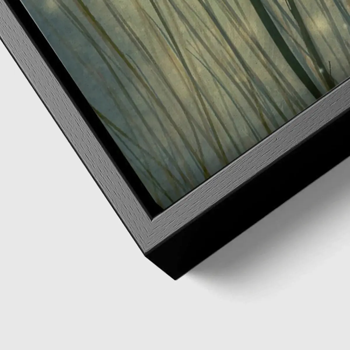 De baklijst geeft een canvas product een luxe en afgewerkte uitstraling. Het frame is zwart en heeft een zichtbare houtnerf structuur.