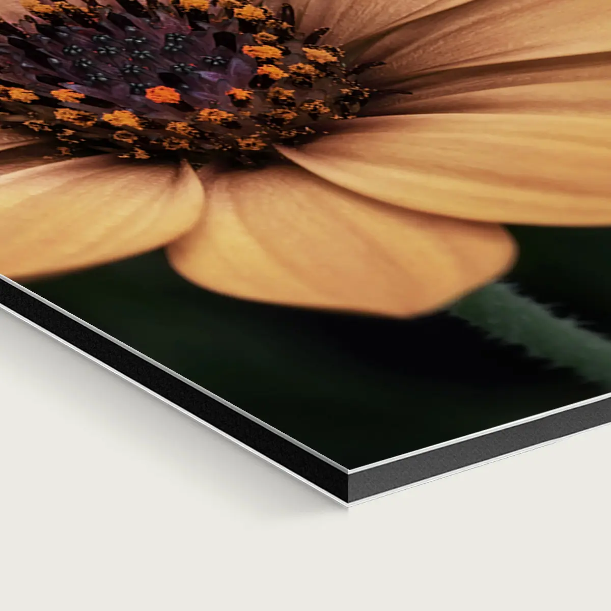 Dibond Premium®, ook wel aluminium paneel genoemd, is een sandwichpaneel van 3 mm dik en bestaat uit drie verschillende lagen. Dit plaatmateriaal is licht in gewicht, maar toch zeer stevig dankzij de speciale combinatie van aluminium met een zwarte kunststof kern.