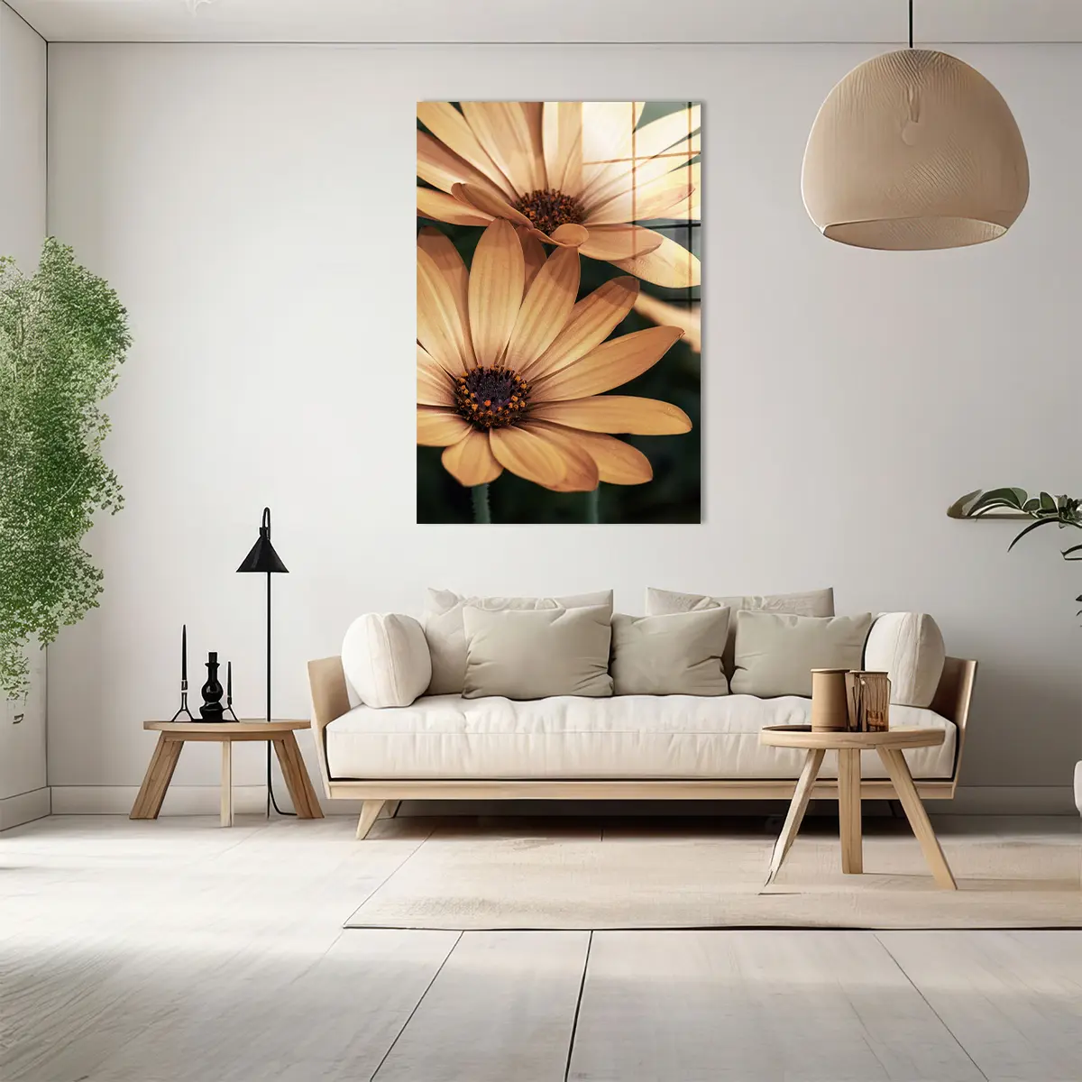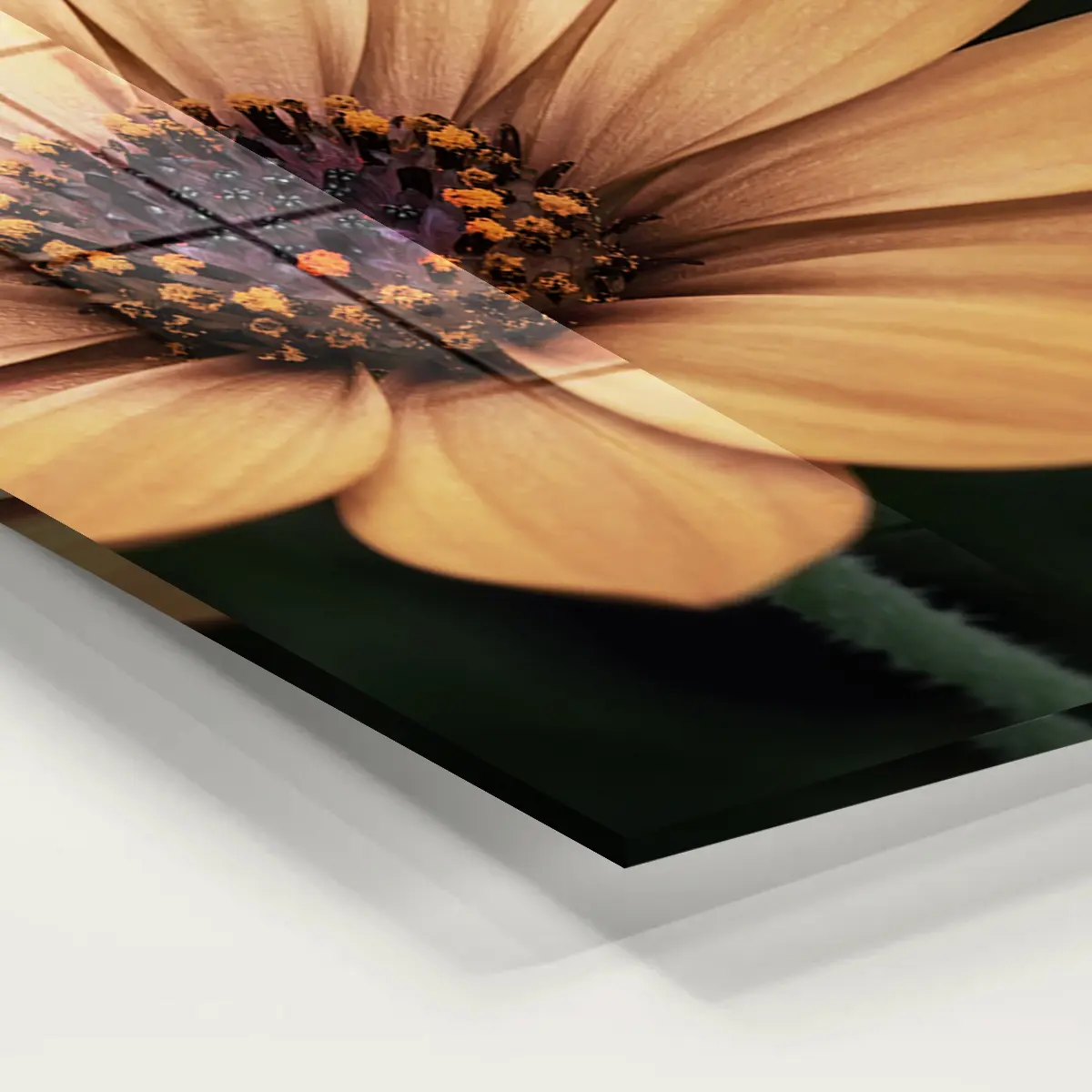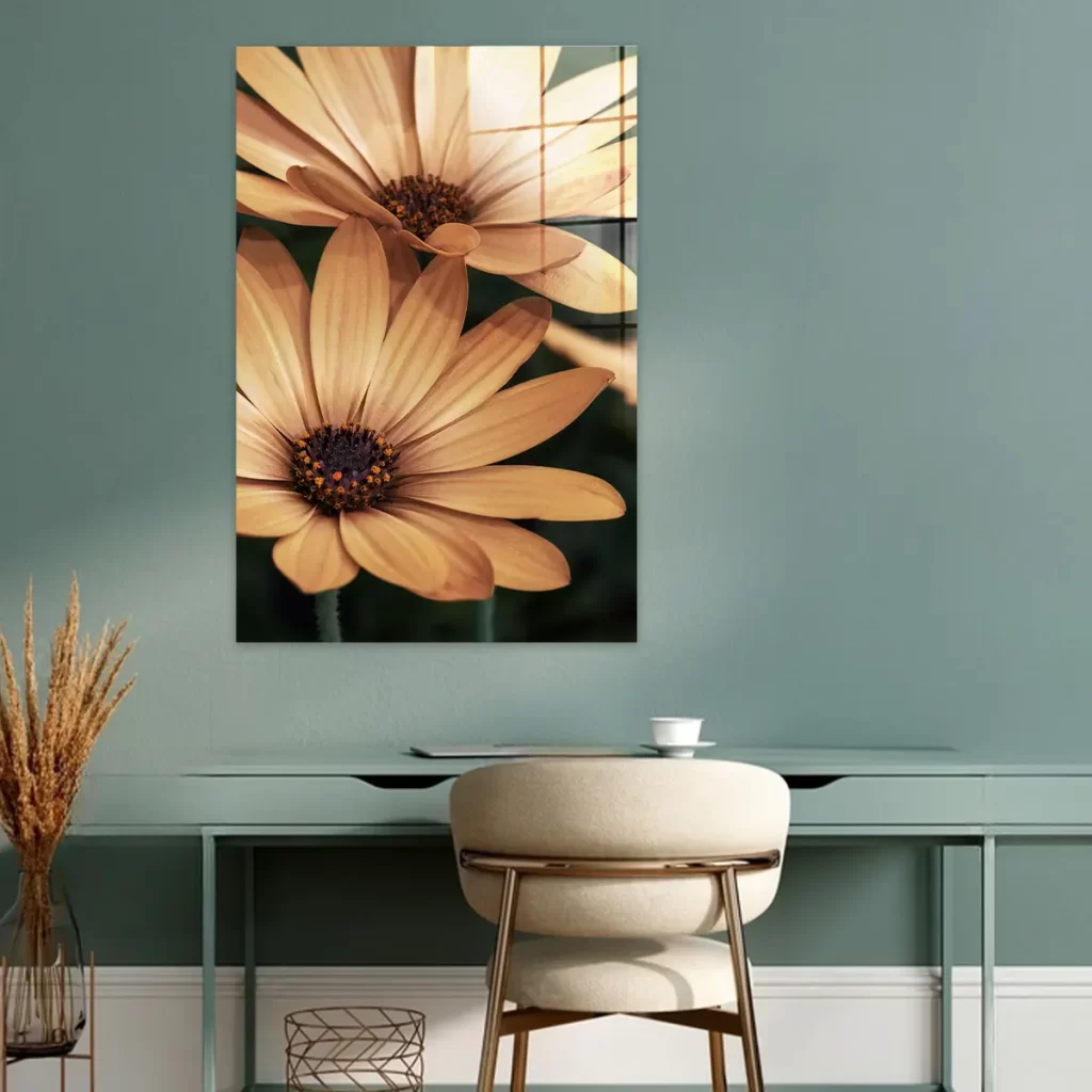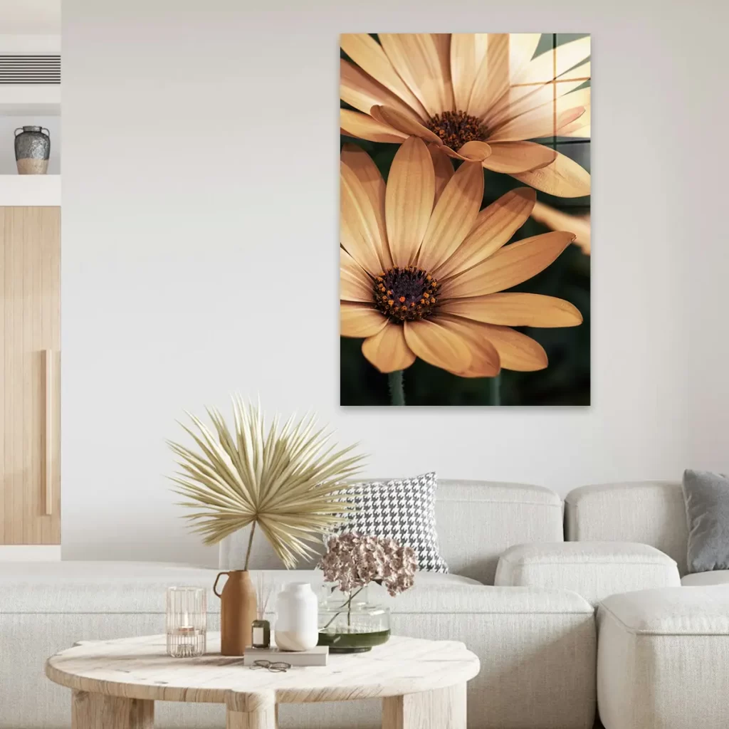 Het schilderij op glas heeft een moderne look en past goed in mijn interieur. Tevreden met mijn aankoop.