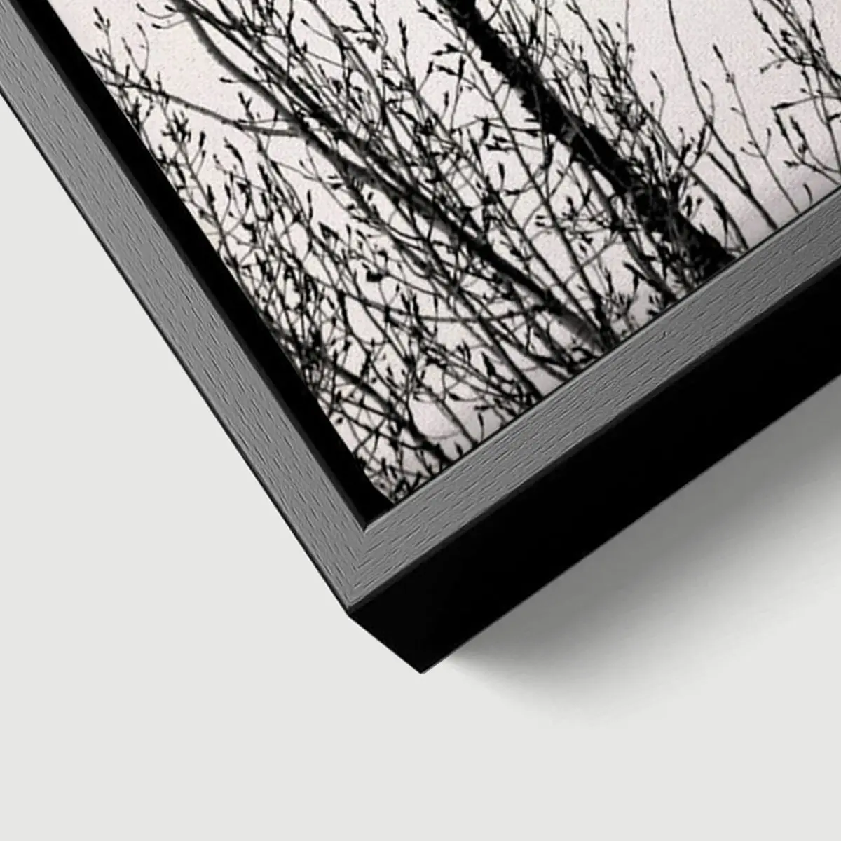De baklijst geeft een canvas product een luxe en afgewerkte uitstraling. Het frame is zwart en heeft een zichtbare houtnerf structuur.