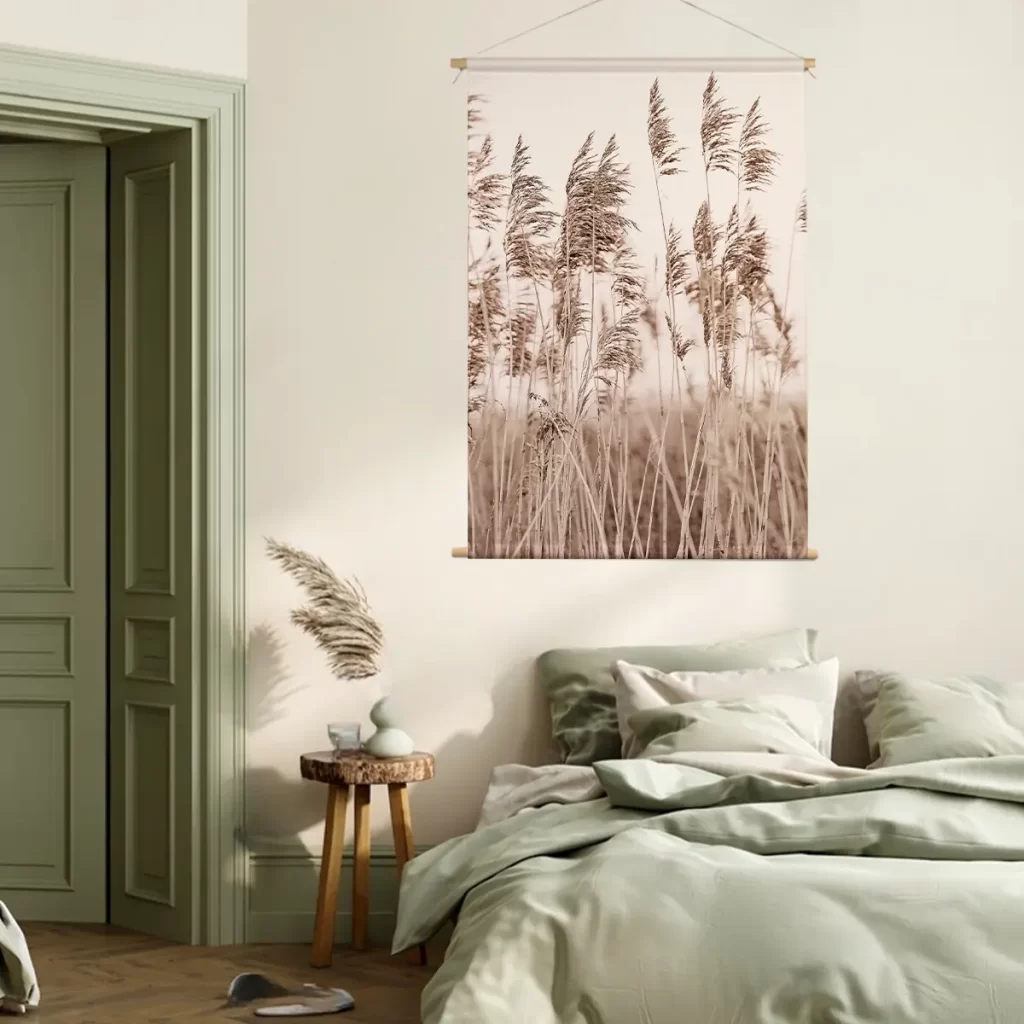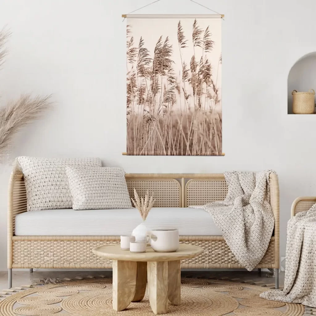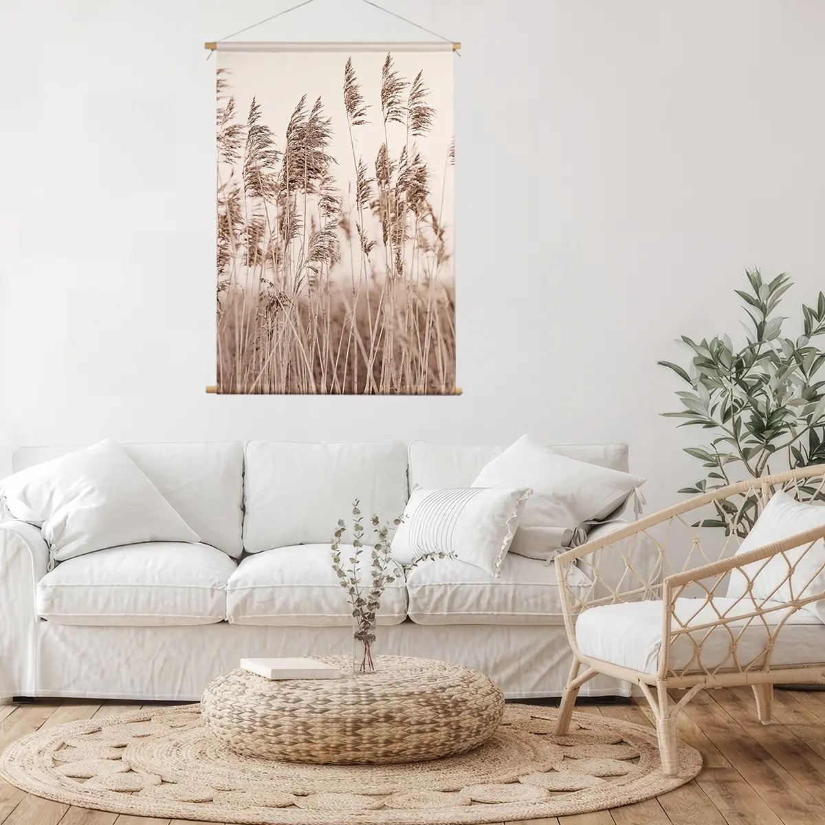 Een sfeervol beeld van wuivend pampagras in zachte, warme tinten. De beweging in het beeld en de subtiele kleurschakeringen creëren een kalmerend effect. Deze print voegt een vleugje natuurlijke rust en elegantie toe aan elk interieur, perfect voor een moderne of bohemian woonstijl.