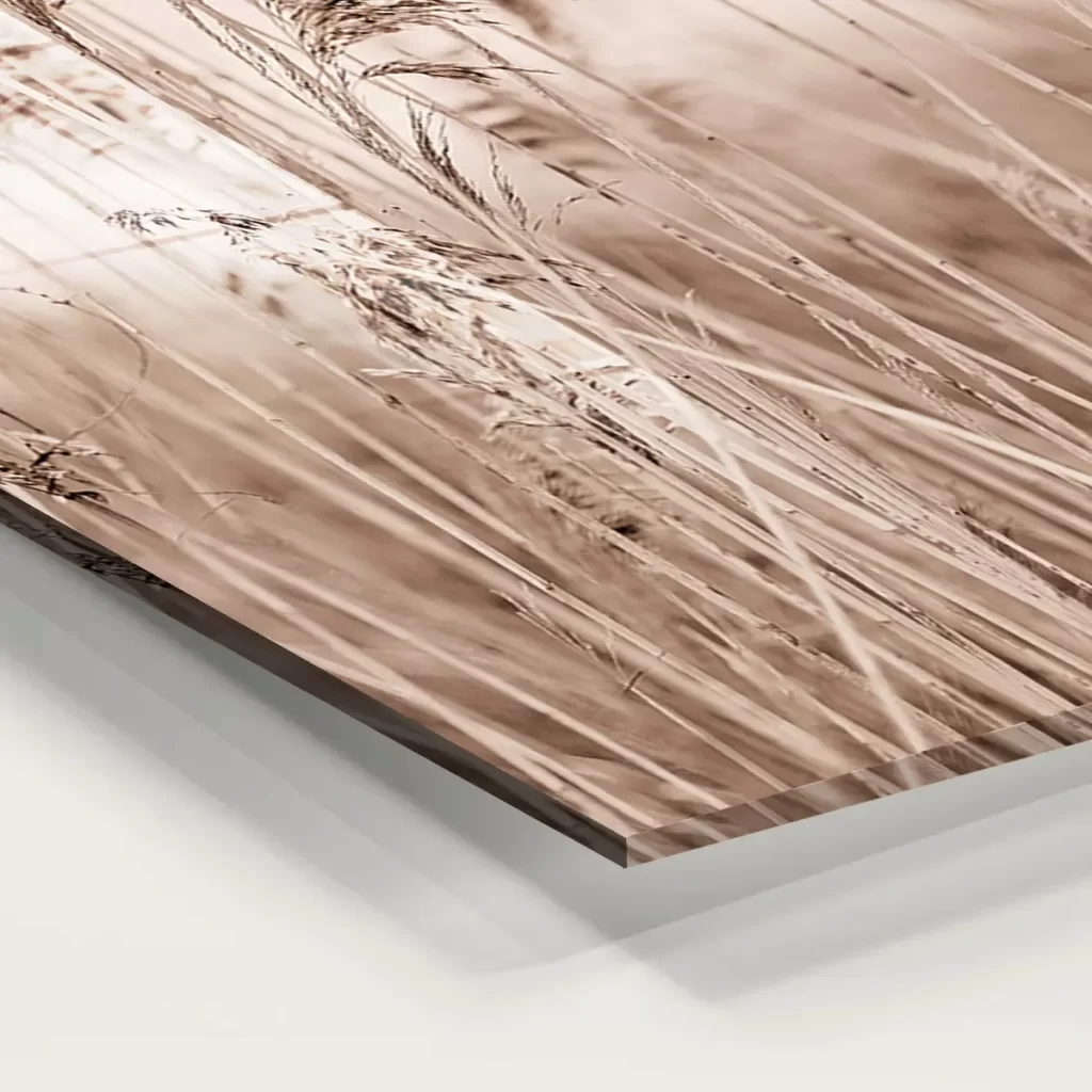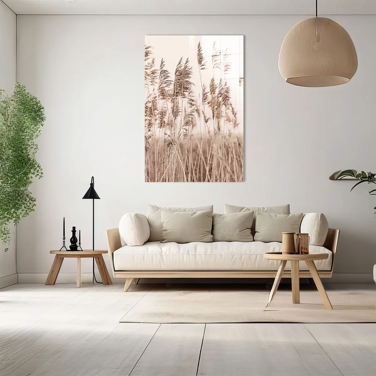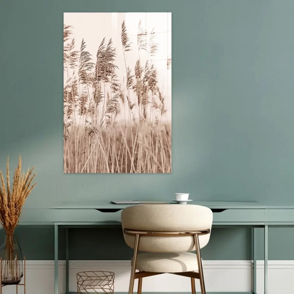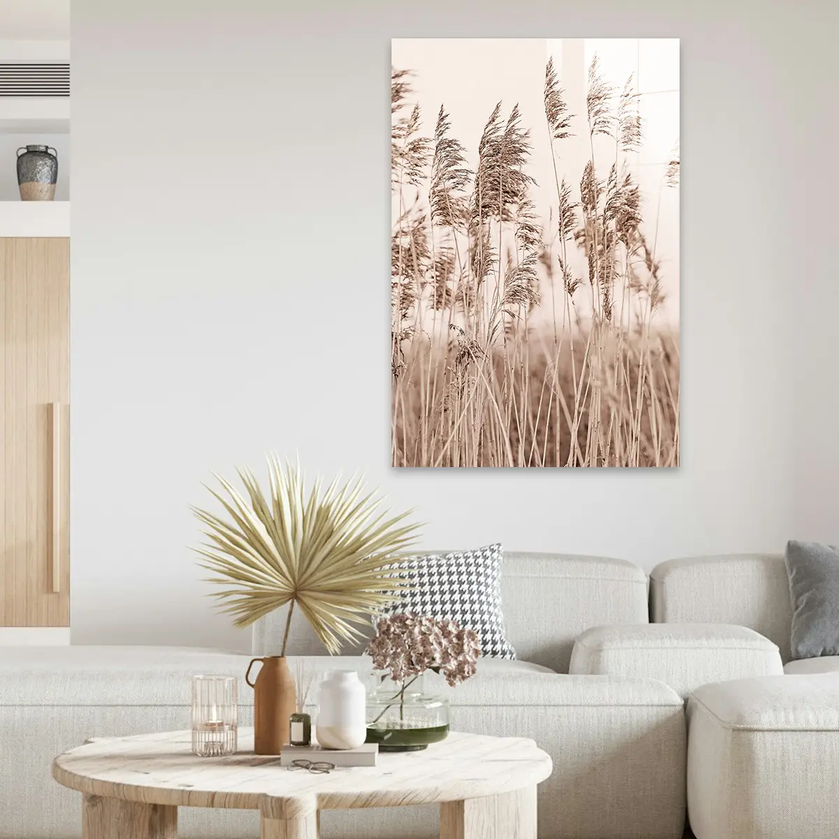 Een sfeervol beeld van wuivend pampagras in zachte, warme tinten. De beweging in het beeld en de subtiele kleurschakeringen creëren een kalmerend effect. Deze print voegt een vleugje natuurlijke rust en elegantie toe aan elk interieur, perfect voor een moderne of bohemian woonstijl.