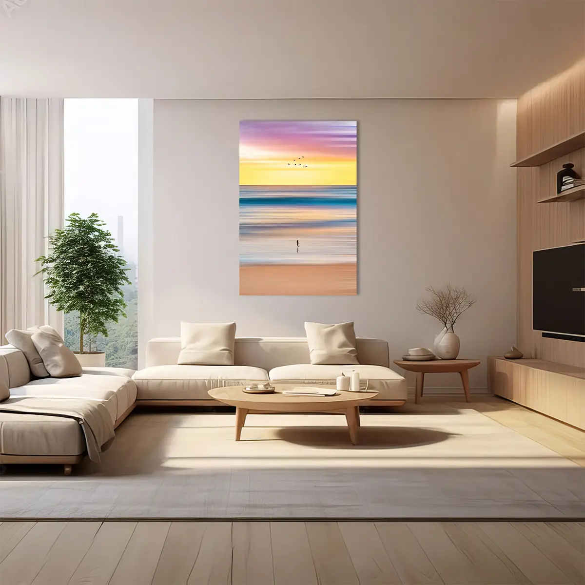 Ik heb een schilderij gekocht voor mijn slaapkamer. Het staat er mooi en geeft een rustige sfeer. Ik ben tevreden met mijn keuze.