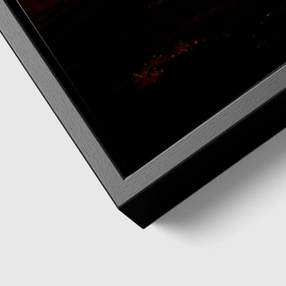 De baklijst geeft een canvas product een luxe en afgewerkte uitstraling. Het frame is zwart en heeft een zichtbare houtnerf structuur.