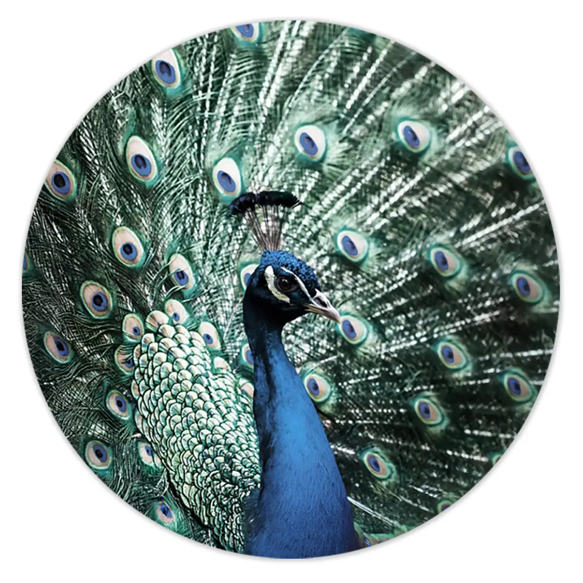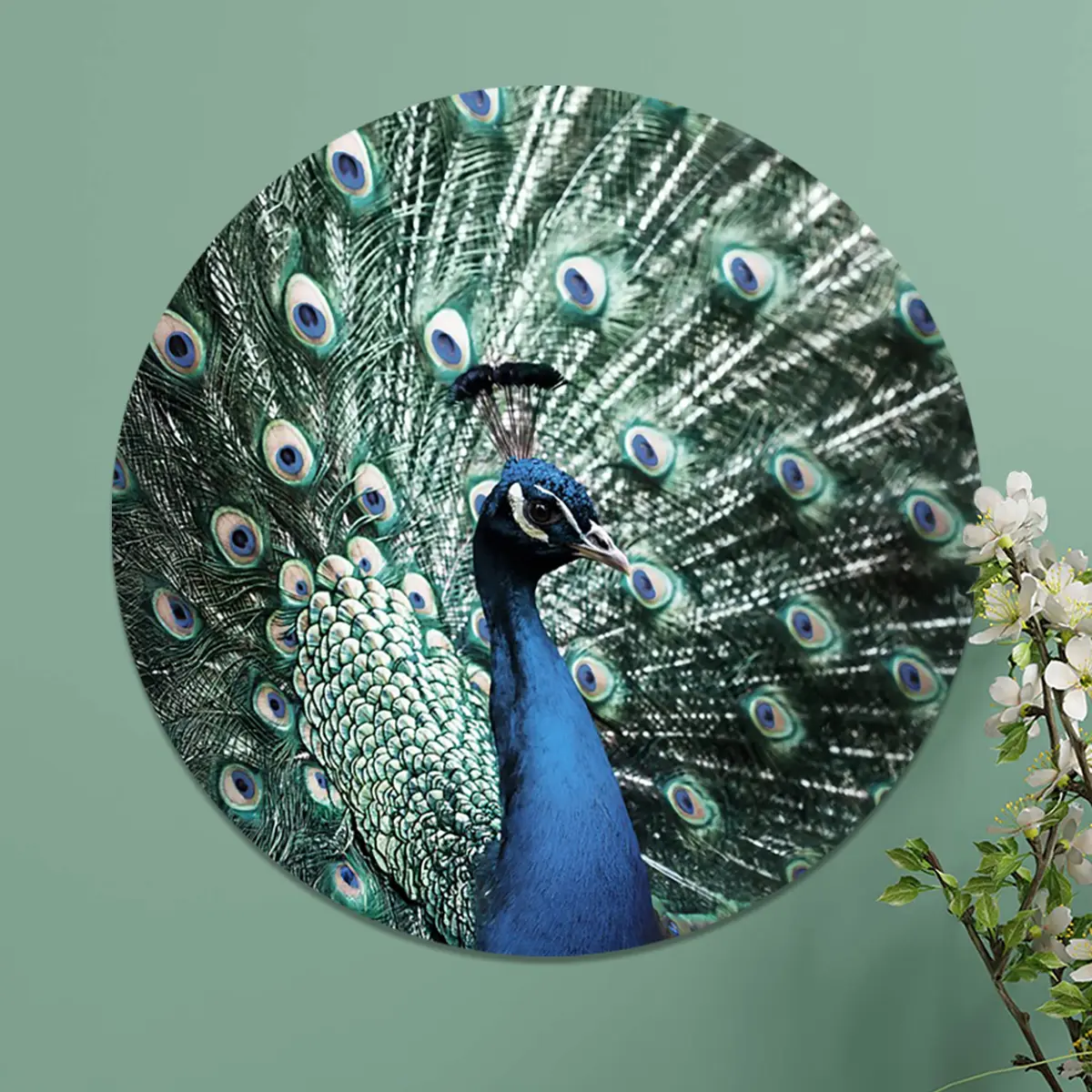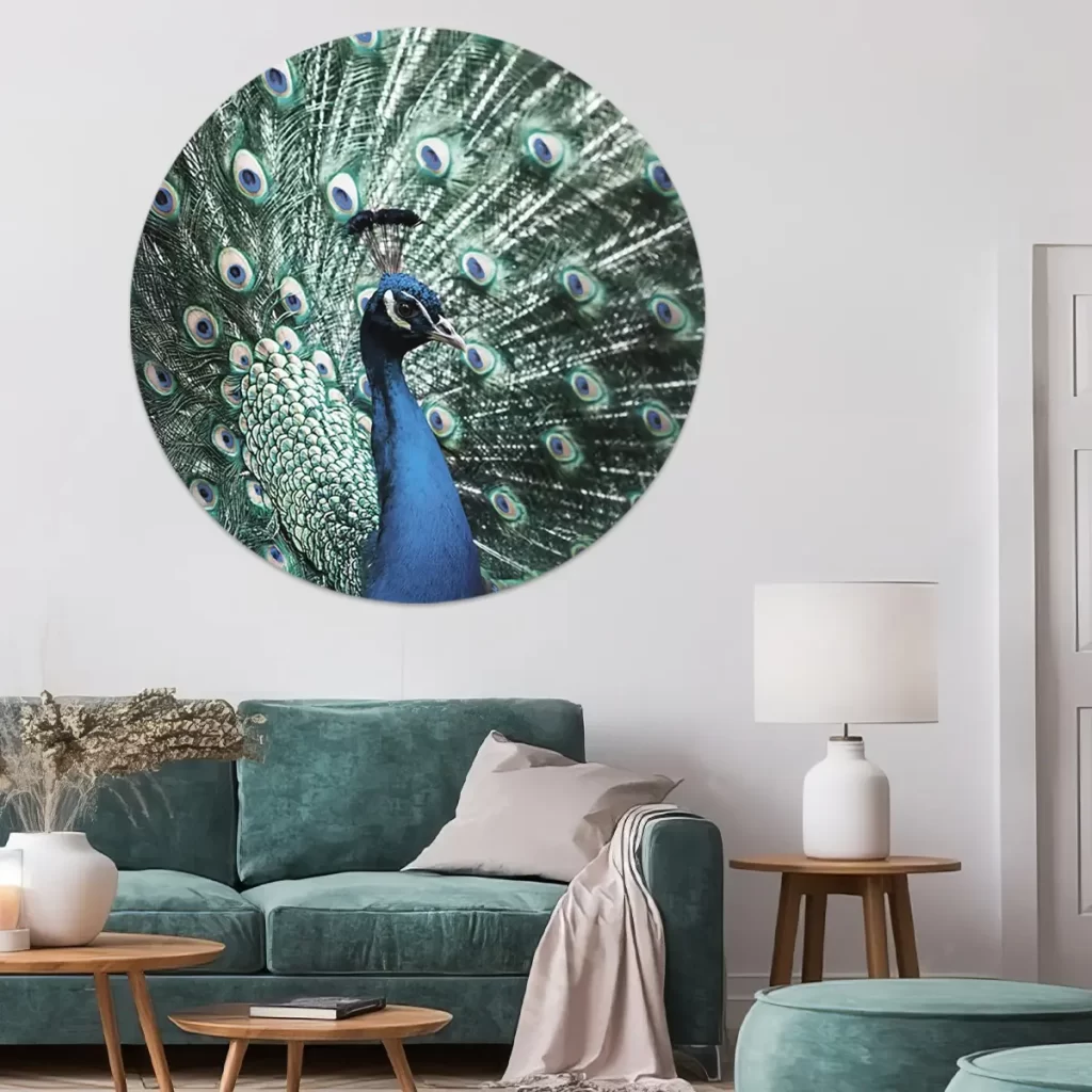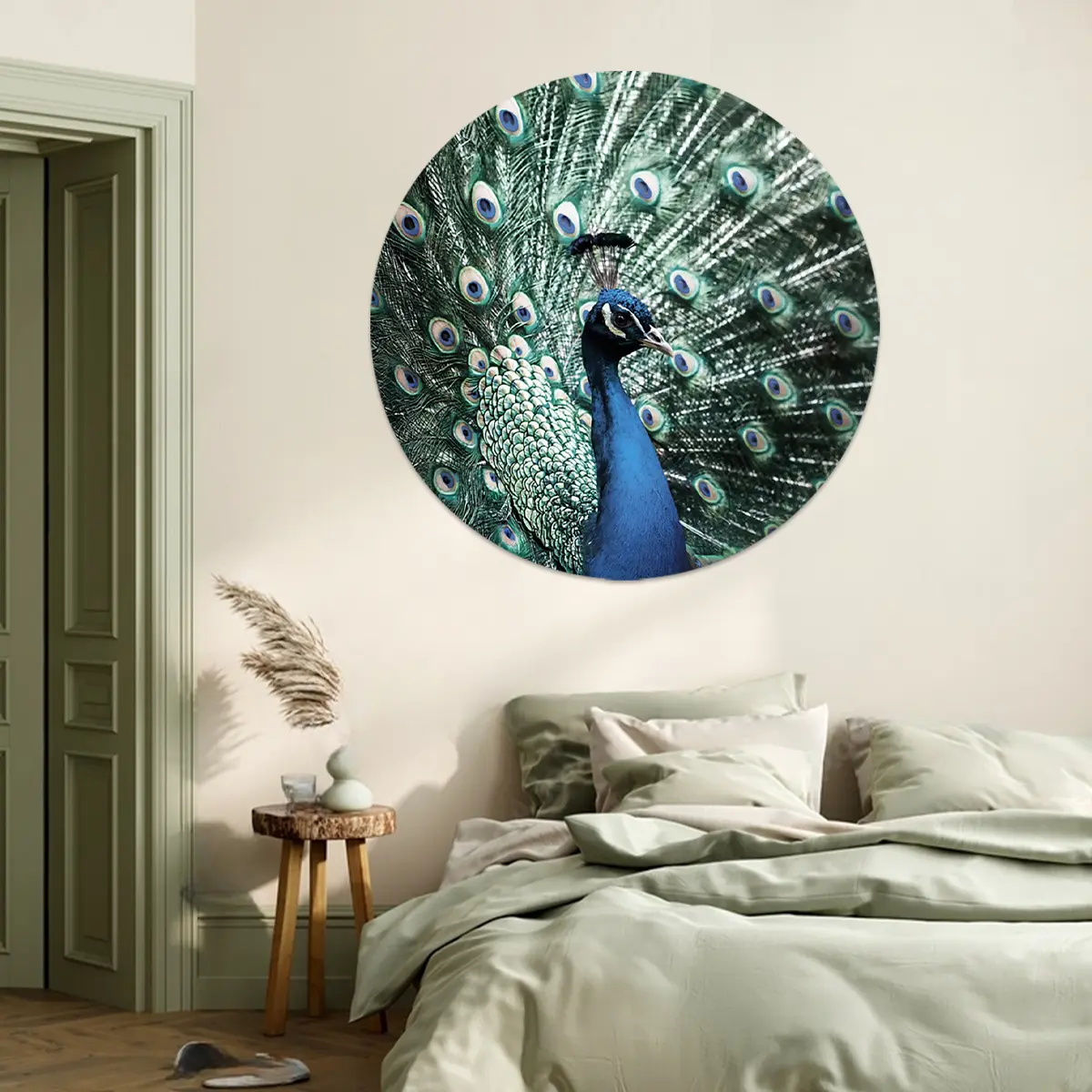Dit kunstwerk toont de trotse en indrukwekkende schoonheid van een Indiase pauw, met zijn schitterende veren volledig uitgespreid. Het schilderij weerspiegelt de kenmerkende flamboyantie van het dier en de pracht van de natuur, met levendige kleuren en gedetailleerde.