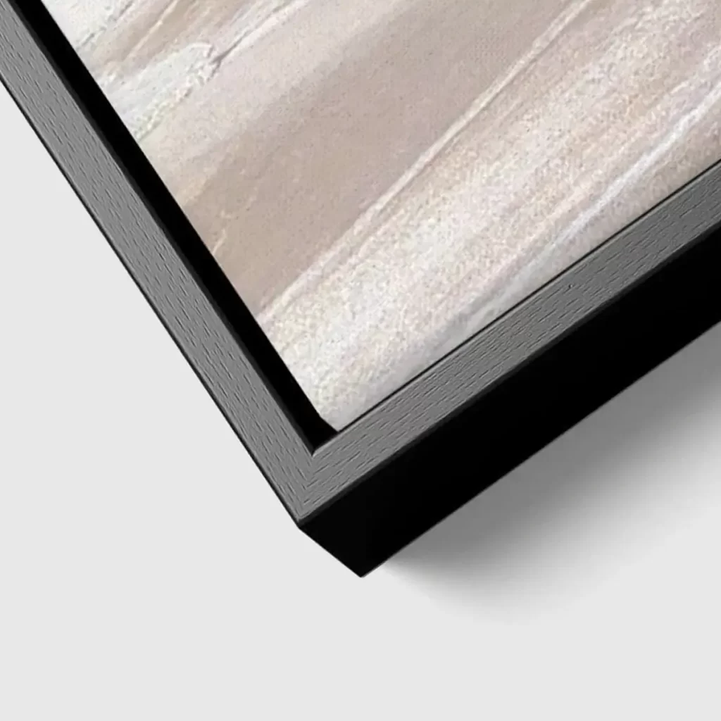 De baklijst geeft een canvas product een luxe en afgewerkte uitstraling. Het frame is zwart en heeft een zichtbare houtnerf structuur.