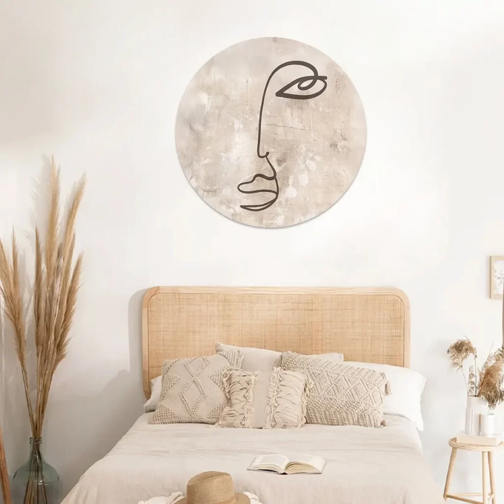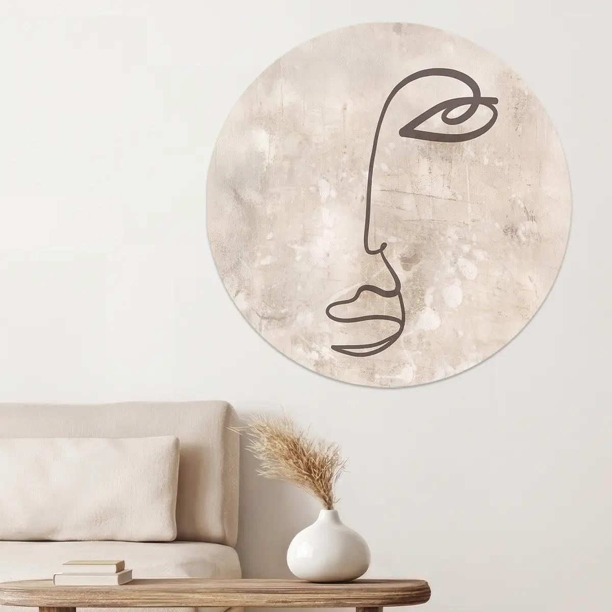 Een elegante, minimalistische lijntekening van een gezichtsprofiel op een subtiele beige achtergrond met textuur. De eenvoud van de enkele lijn creëert een krachtig, modern kunstwerk dat perfect past in een minimalistisch of Scandinavisch interieur. Deze print voegt een vleugje artistieke verfijning toe aan elke ruimte zonder te overheersen.
