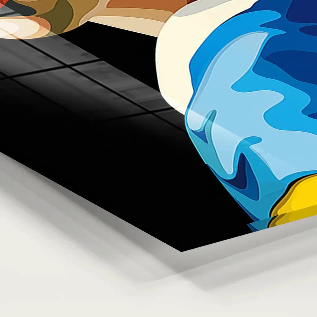 Het schilderij op glas heeft een moderne look en past goed in mijn interieur. Tevreden met mijn aankoop.