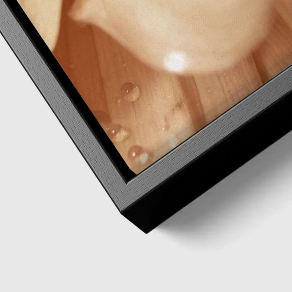 De baklijst geeft een canvas product een luxe en afgewerkte uitstraling. Het frame is zwart en heeft een zichtbare houtnerf structuur.