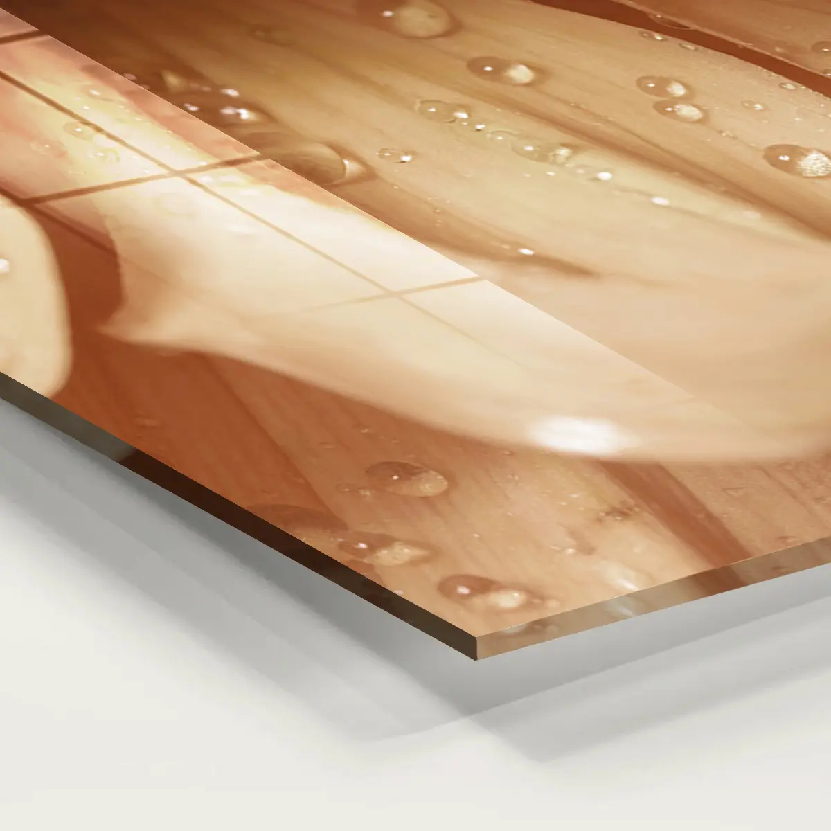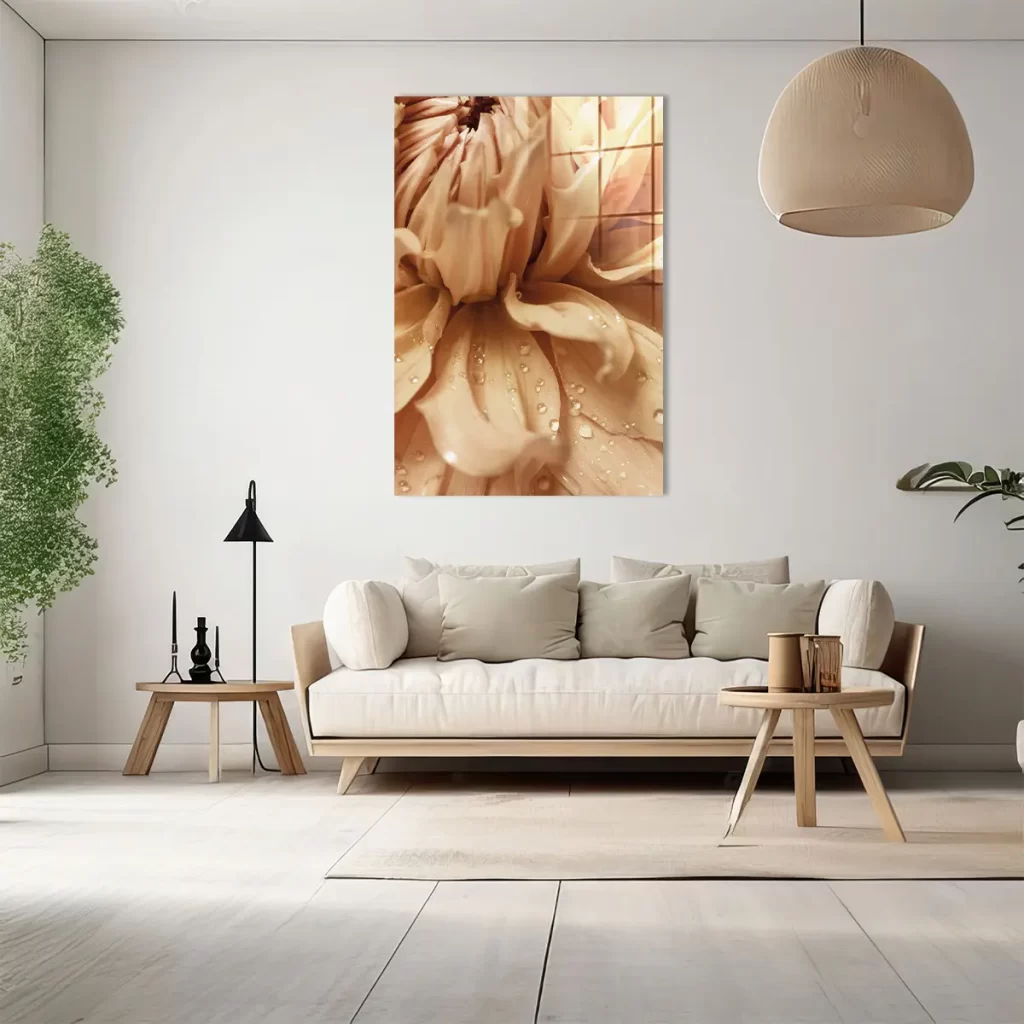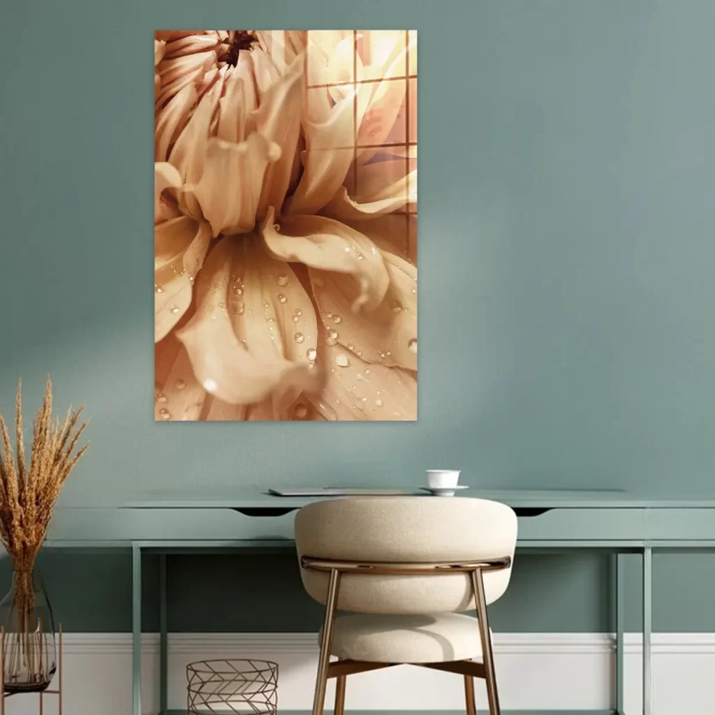 Het schilderij op glas heeft een moderne look en past goed in mijn interieur. Tevreden met mijn aankoop.