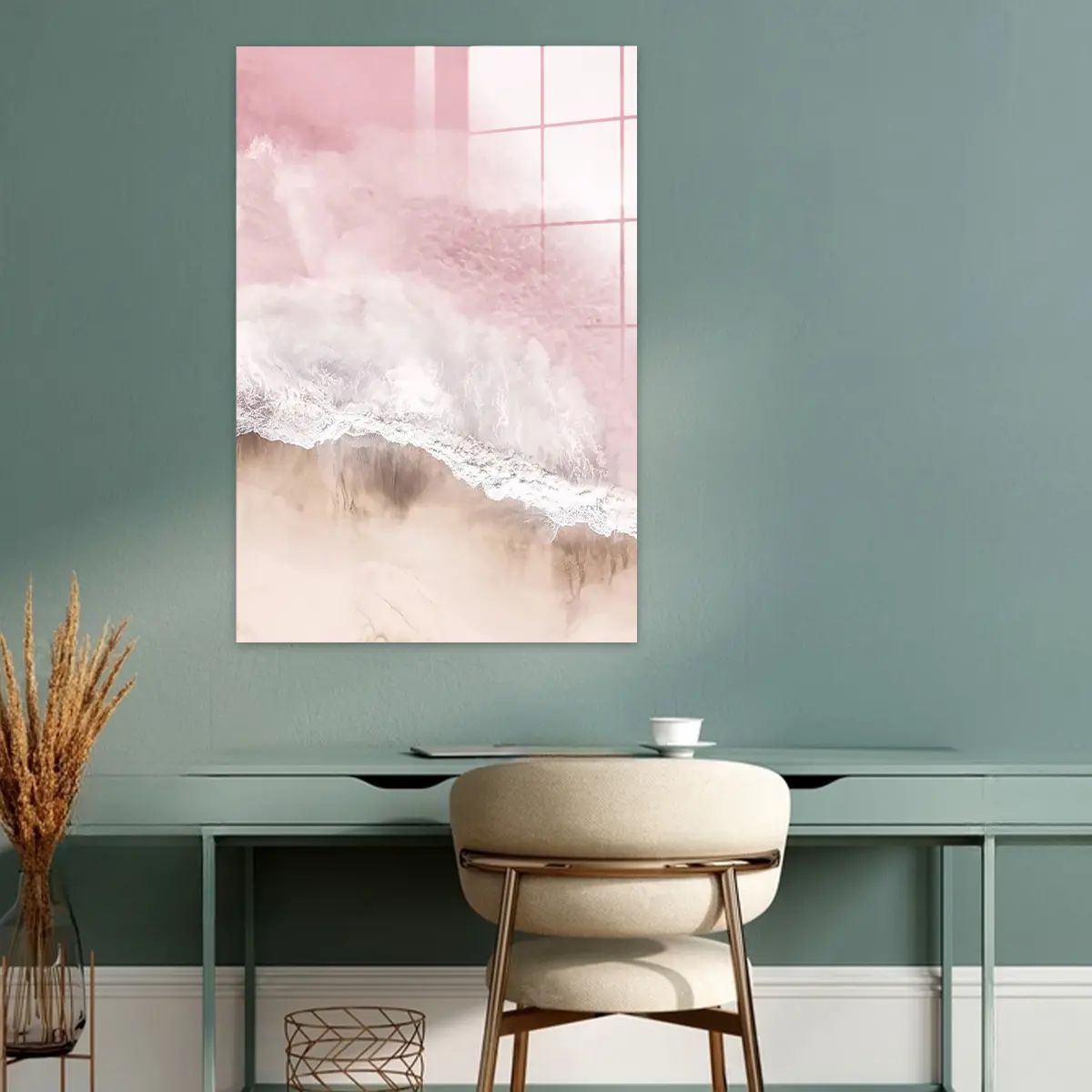Het schilderij op glas heeft een moderne look en past goed in mijn interieur. Tevreden met mijn aankoop.