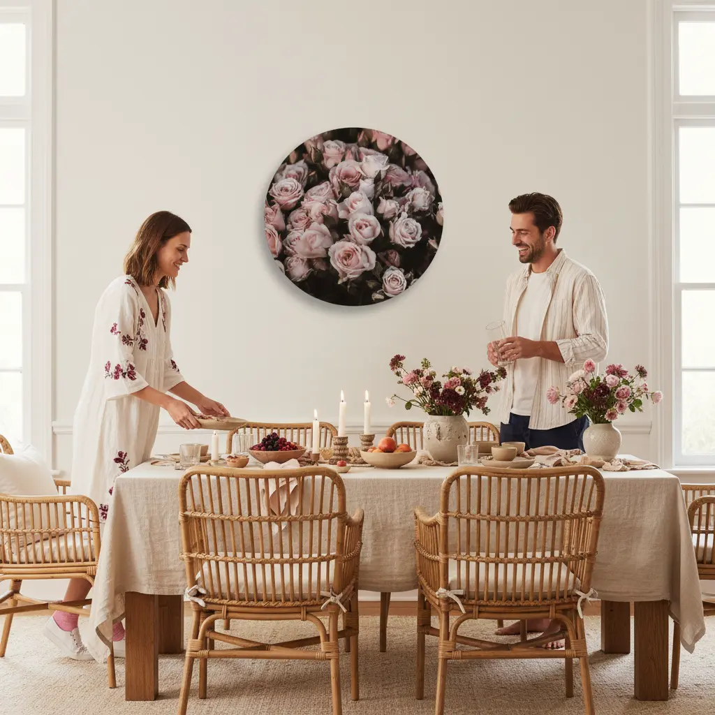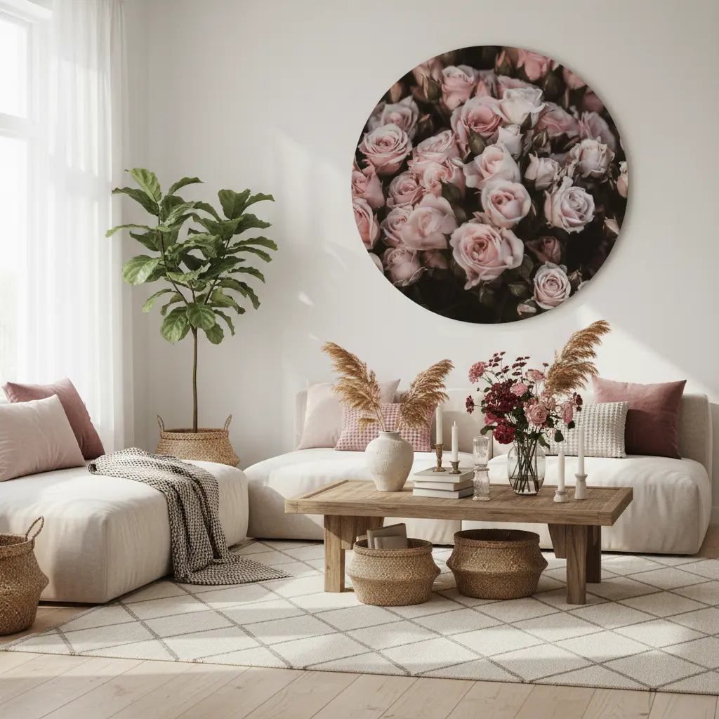 Romantische bloemencombinatie van zachtroze rozen voor een luxe, warme uitstraling. Ideaal als sfeervolle blikvanger en perfect te combineren met hout, linnen en natuurlijke accessoires.