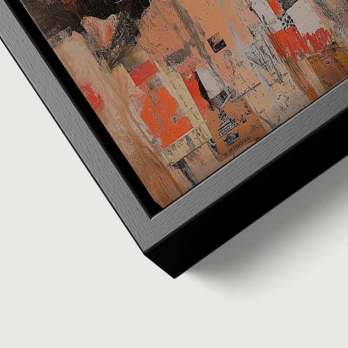 De baklijst geeft een canvas product een luxe en afgewerkte uitstraling. Het frame is zwart en heeft een zichtbare houtnerf structuur.