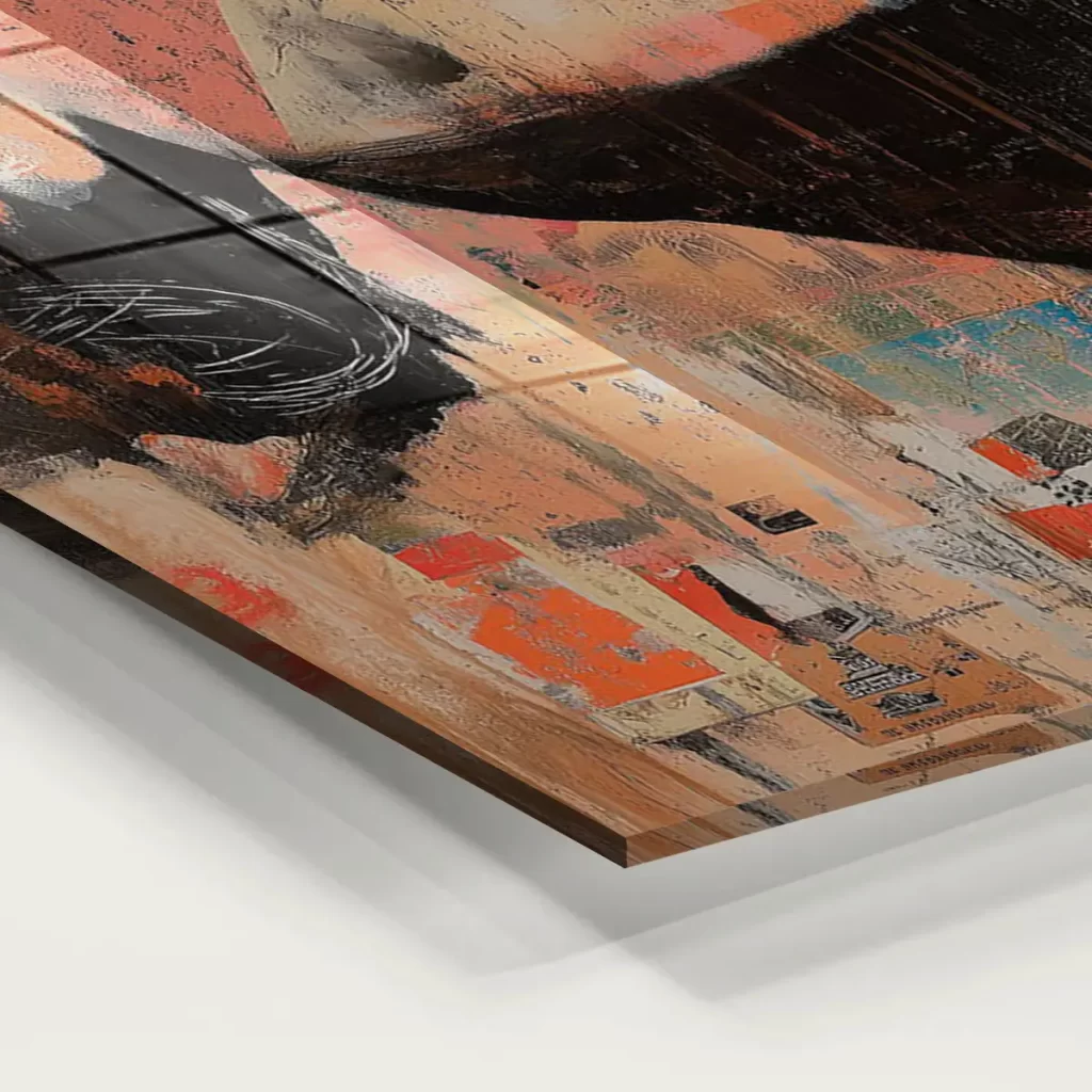 Het schilderij op glas heeft een moderne look en past goed in mijn interieur. Tevreden met mijn aankoop.