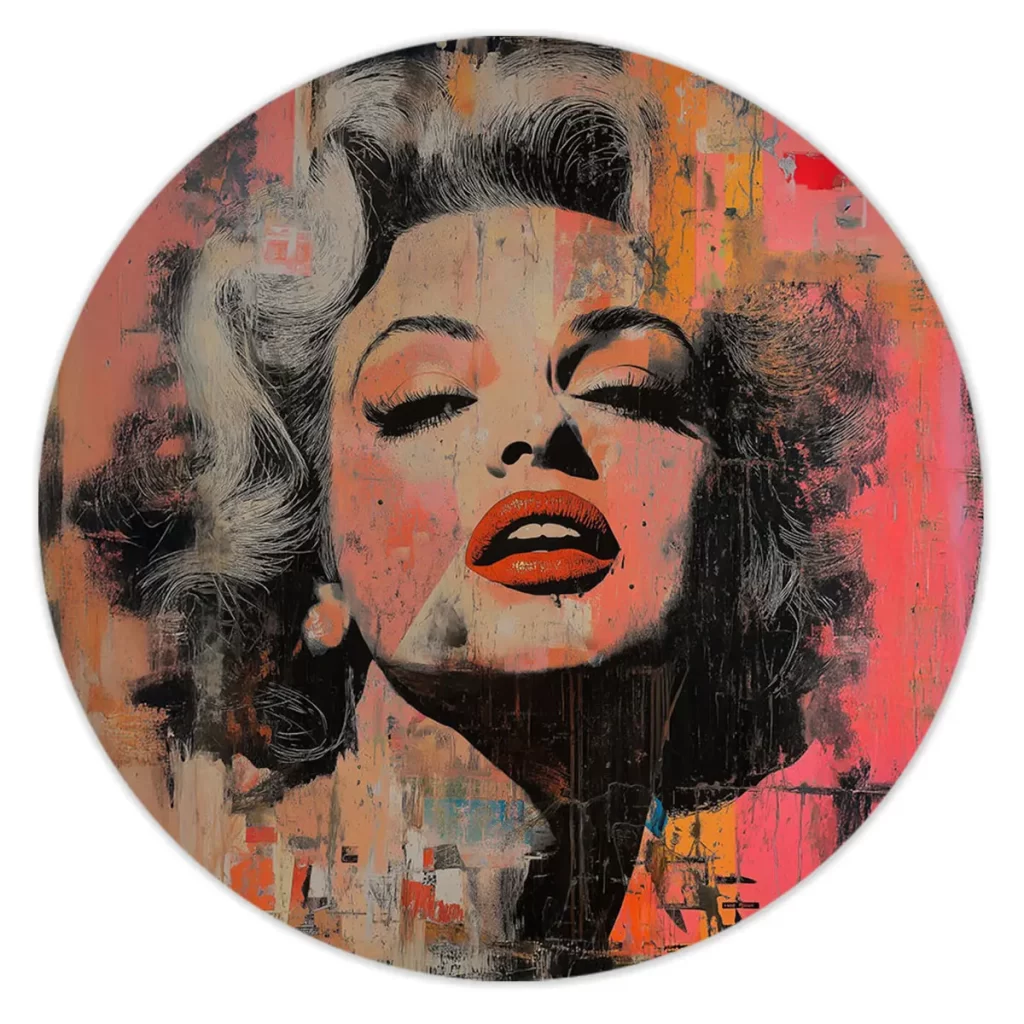 Een expressieve street art interpretatie van een Marilyn Monroe portret met opvallende rode lippen en verweerde texturen. De warme oranje en roze tinten gecombineerd met de ruwe, artistieke afwerking creëren een krachtig en emotioneel kunstwerk. Deze print brengt een vleugje urbane kunst en moderne expressie in huis, ideaal voor een eigentijds of industrieel interieur.
